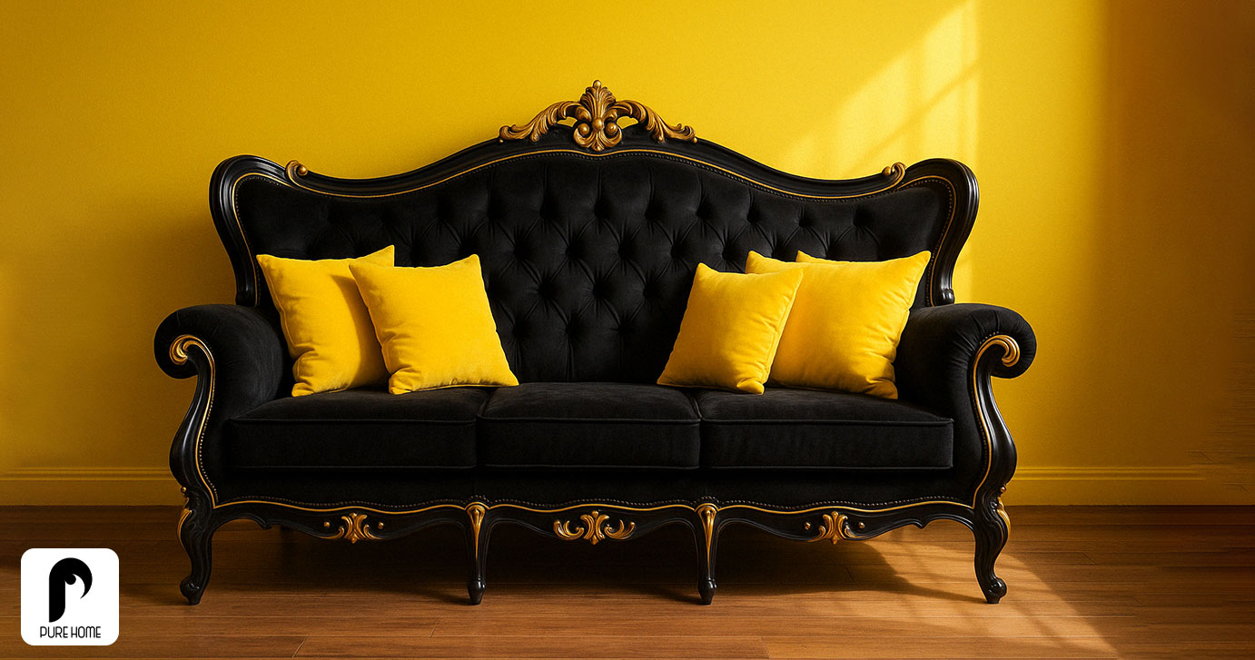 اگر به دنبال ظاهری جسورانه و خلاقانه هستید، ترکیب رنگ زرد و مشکی می تواند انتخابی منحصربه فرد برای مبل سلطنتی شما باشد. زرد، رنگی پرانرژی و شاد است که حس روشنایی و طراوت را به فضا می آورد. در مقابل، مشکی با وقار و سنگینی خود، این شادابی را متعادل می کند و به فضا عمق می بخشد.
