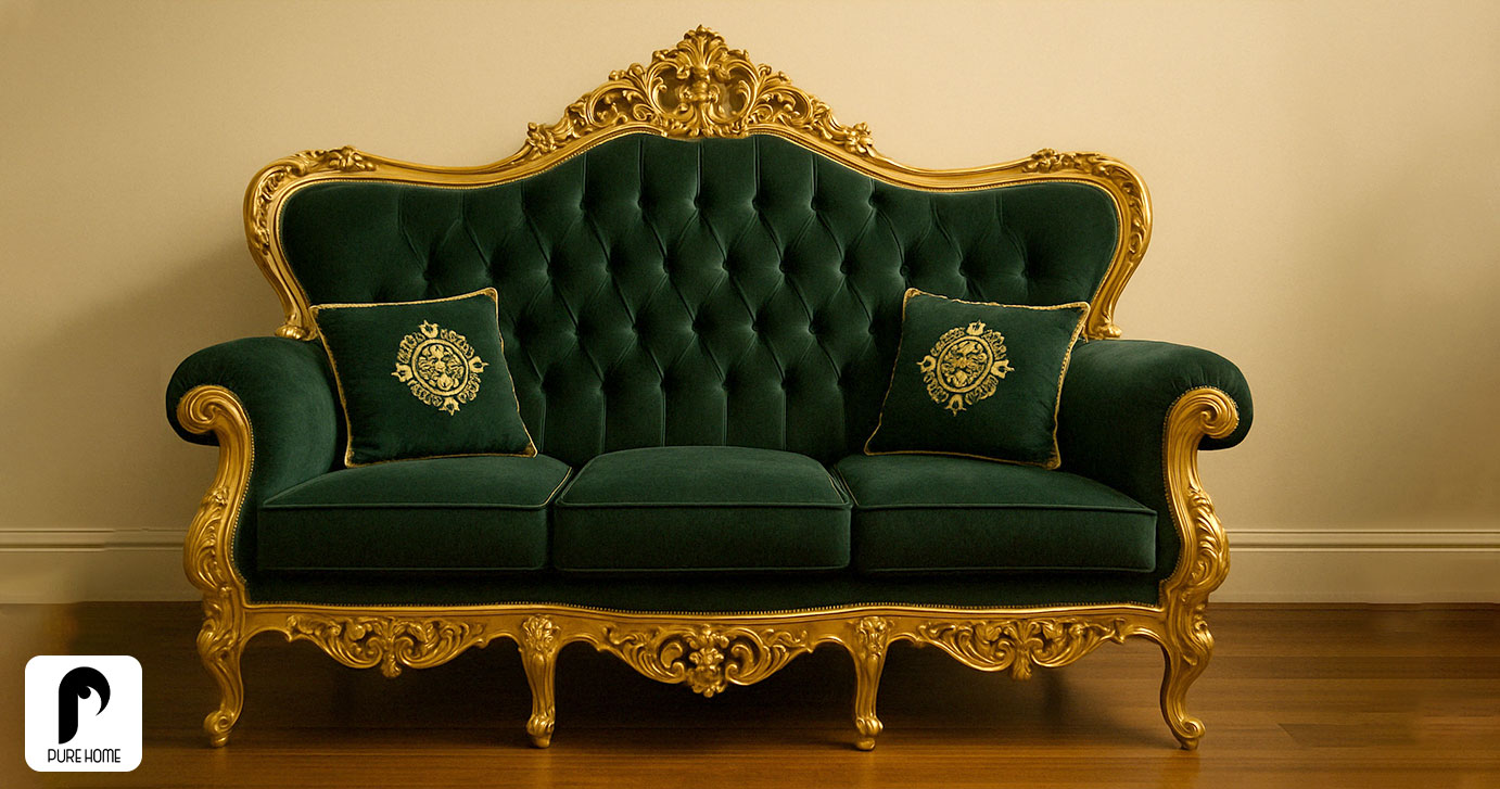 اگر طرفدار دکوراسیون کلاسیک و اصیل هستید، ترکیب سبز تیره و رنگ طلایی مبل سلطنتی انتخابی منحصربه فرد و باوقار برای شماست. سبز تیره، رنگی عمیق و آرام بخش است که حس طبیعت، تعادل و وقار را به فضا می آورد. وقتی این رنگ با درخشش طلایی همراه می شود، نتیجه ی آن ترکیبی شیک، سنگین و بسیار مجلل خواهد بود.