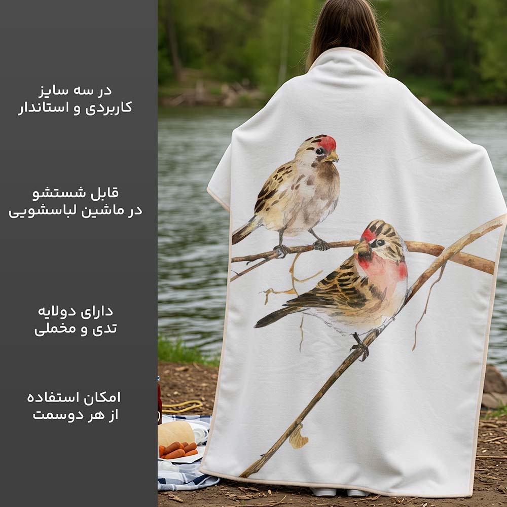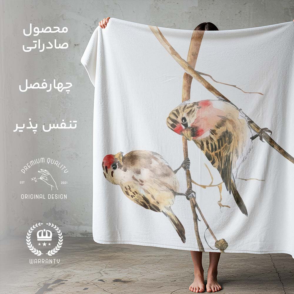 پتو چهار فصل دورو مدل پرندها روی شاخه2
