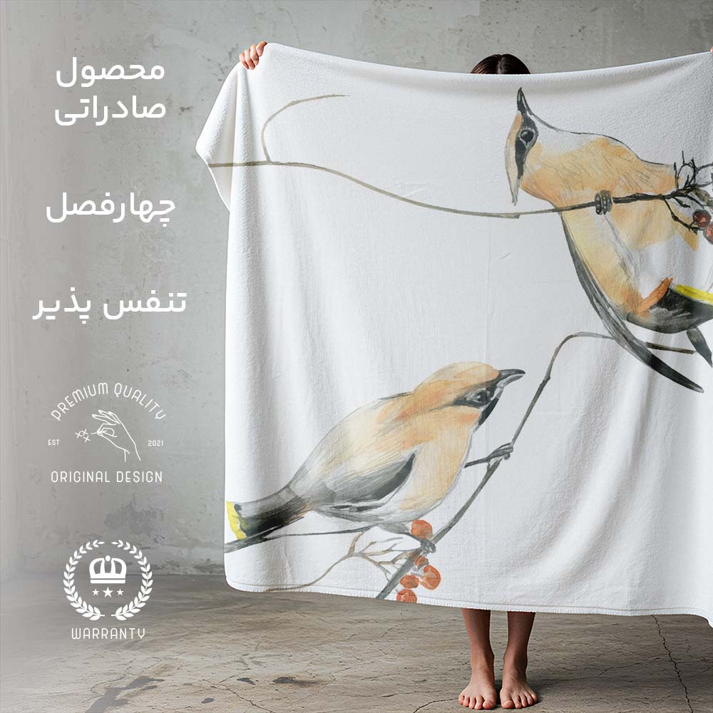 پتو چهار فصل دورو مدل پرندها روی شاخه3