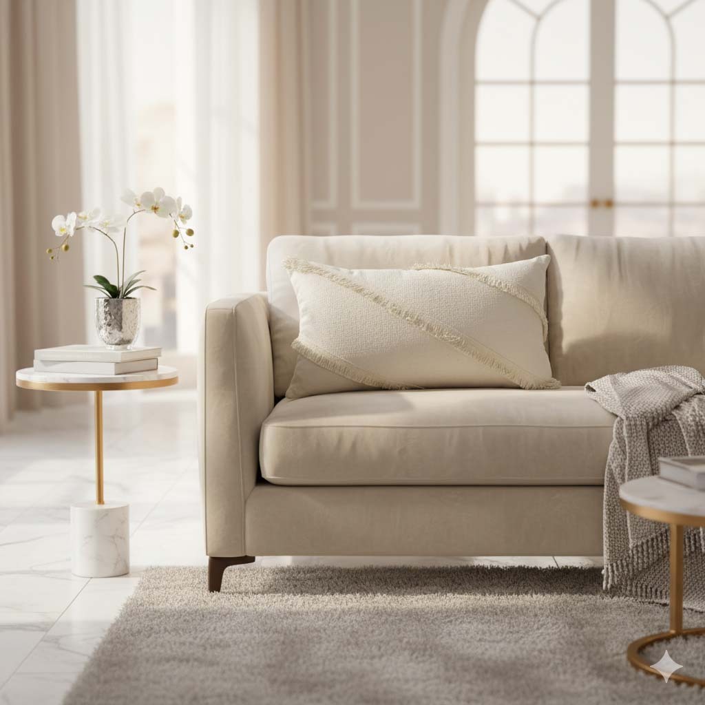 بافت طبیعی لینن و متقال ضخیم، همراه با دوخت تمیز و اجرای دقیق جزئیات، باعث شده این ست علاوه بر زیبایی، ماندگاری بالایی داشته باشد. تضاد ظریف بین سطح ساده پارچه و خطوط مورب بافتدار، جلوهای هنری ایجاد میکند که بدون شلوغی، نقطهٔ تمرکز دلنشینی در دکور میسازد.